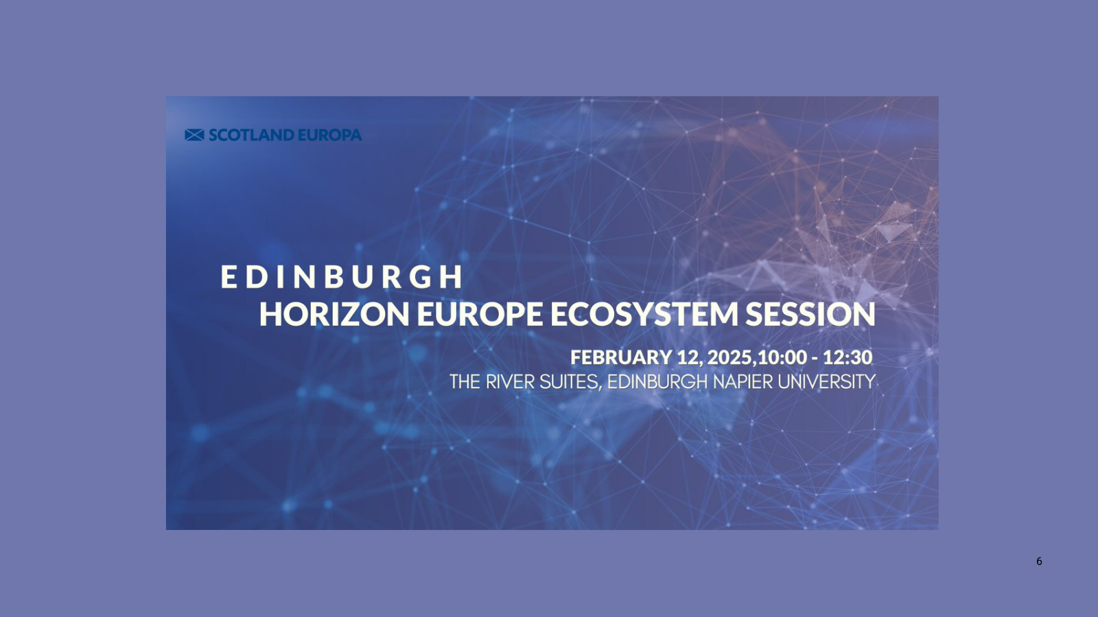 Join the next Horizon Europe ecosystem session will take place on 12 February 2025, kindly hosted by Edinburgh Napier University. The session will run from 10:30 – 12:00 (GMT) at Rivers Suite, Craiglockhart Campus.