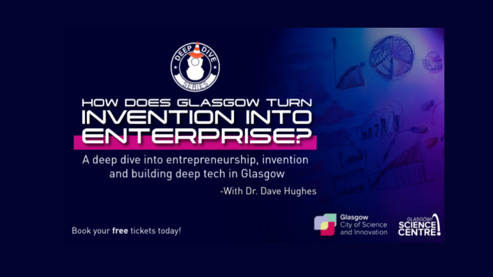 Join Dr. Dave Hughes for the next GCoSI Deep Dive at Glasgow Science Centre, exploring entrepreneurship, invention and building deep technology in Glasgow.